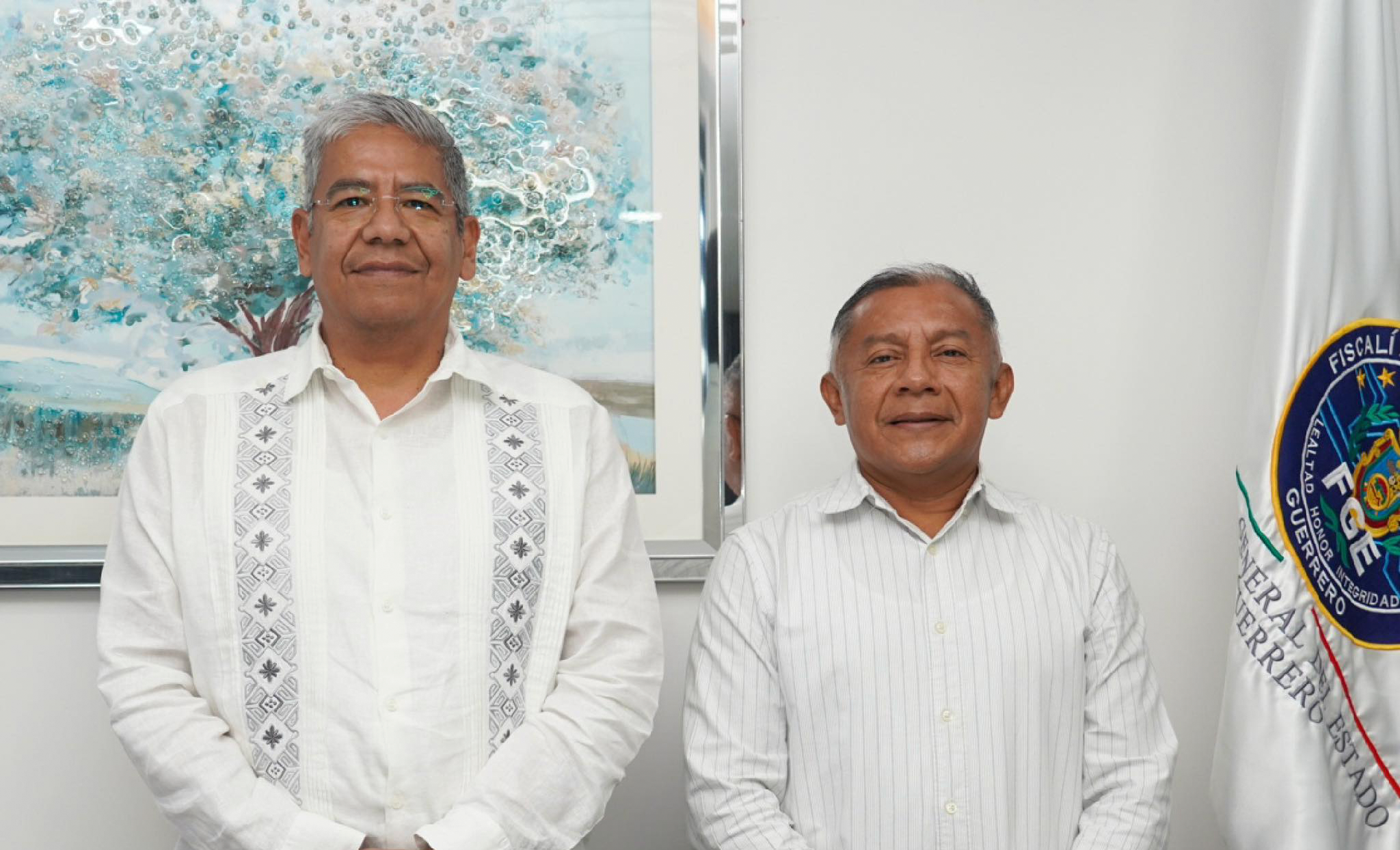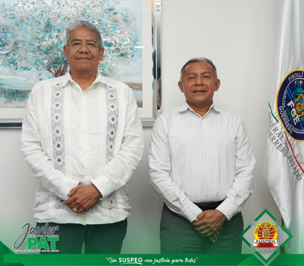 Con el propósito de mantener una reunión de presentación y continuidad, el Secretario General del Sindicato Único de Servidores Públicos del Estado de Guerrero (SUSPEG), Javier del Carmen Velázquez Pat, y el Fiscal General del Estado, Zipacná de Jesús Torres Ojeda, abordaron distintos temas laborales concernientes a ese organismo autónomo, con el fin de dar seguimiento oportuno a la gestión sindical realizada.